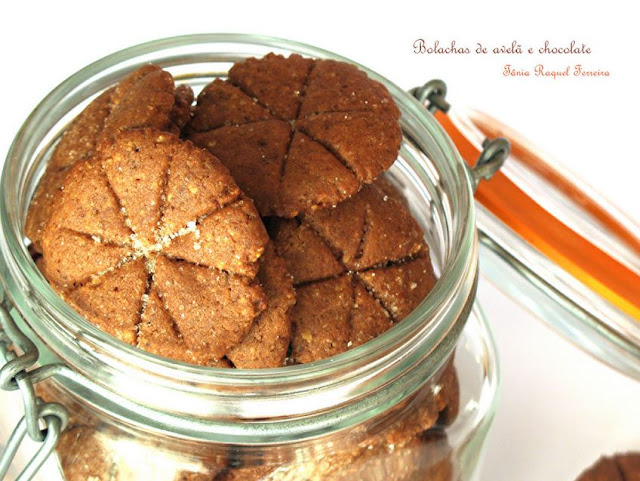 Continuar a amassar e adicionar aos poucos, a mistura de farinha. Envolver bem e juntar o chocolate derretido e a farinha de avelã.