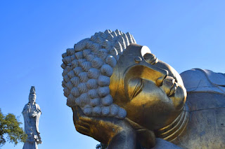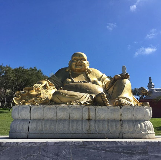 Entre budas, pagodes, estátuas de terracota e várias esculturas cuidadosamente colocadas entre a vegetação, estima-se que foram usadas mais de 6 mil toneladas de mármore e granito para edificar esta obra monumental. A escadaria central é o ponto focal do jardim, onde os Buddha dourados dão calmamente as boas-vindas aos visitantes.